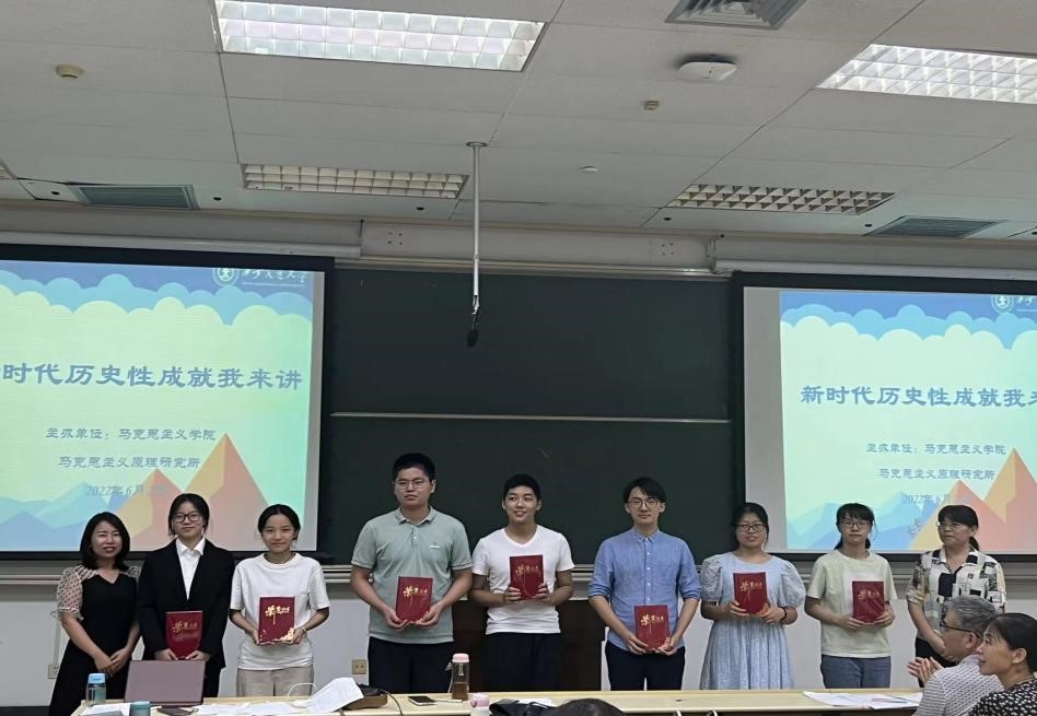 在活动的尾声,各位评委老师给获奖同学进行了颁奖,本次“新时代历史性成就我来讲”(第二场)比赛共评选出一等奖6名,二等奖10名,三等奖15名。