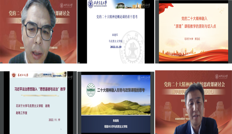 为深入学习贯彻党的二十大精神、扎实推进习近平新时代中国特色社会主义思想和党的二十大精神“三进”工作。11月19日下午,党的二十大精神融入高校思政课研讨会暨全国高校思政课“手拉手”集体备课中心集体备课活动在线上成功举办。黑料网