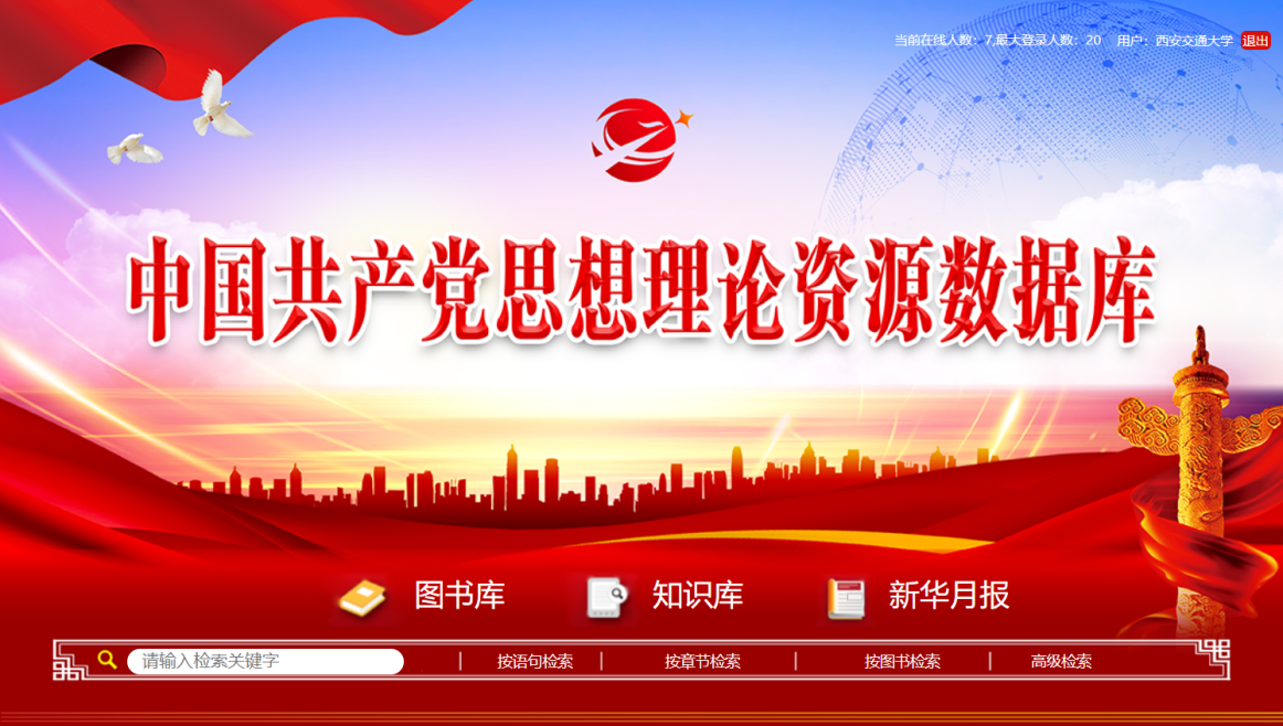 中国共产党思想理论资源数据库是在中央领导同志的亲切关怀和中宣部、新闻出版广电总局的有力指导下,由人民出版社开发建成,被党政干部和专家学者称为“用科学技术传播中国化马克思主义的重大创新工程”。数据库完整系统收入了党的思想理论主要著作文献,内容覆盖我国出版的所有马列经典著作、党和国家主要领导人所有著作、公开发表的所有中央文件文献、国家所有法律法规。数据库还有代表性的收入了大量研究性著作、党史和国际共运史著作、重要人物资料,以及革命战争年代出版的部分重要图书等。目前收入图书分为12个子库,13000多册、7000多万个知识点。