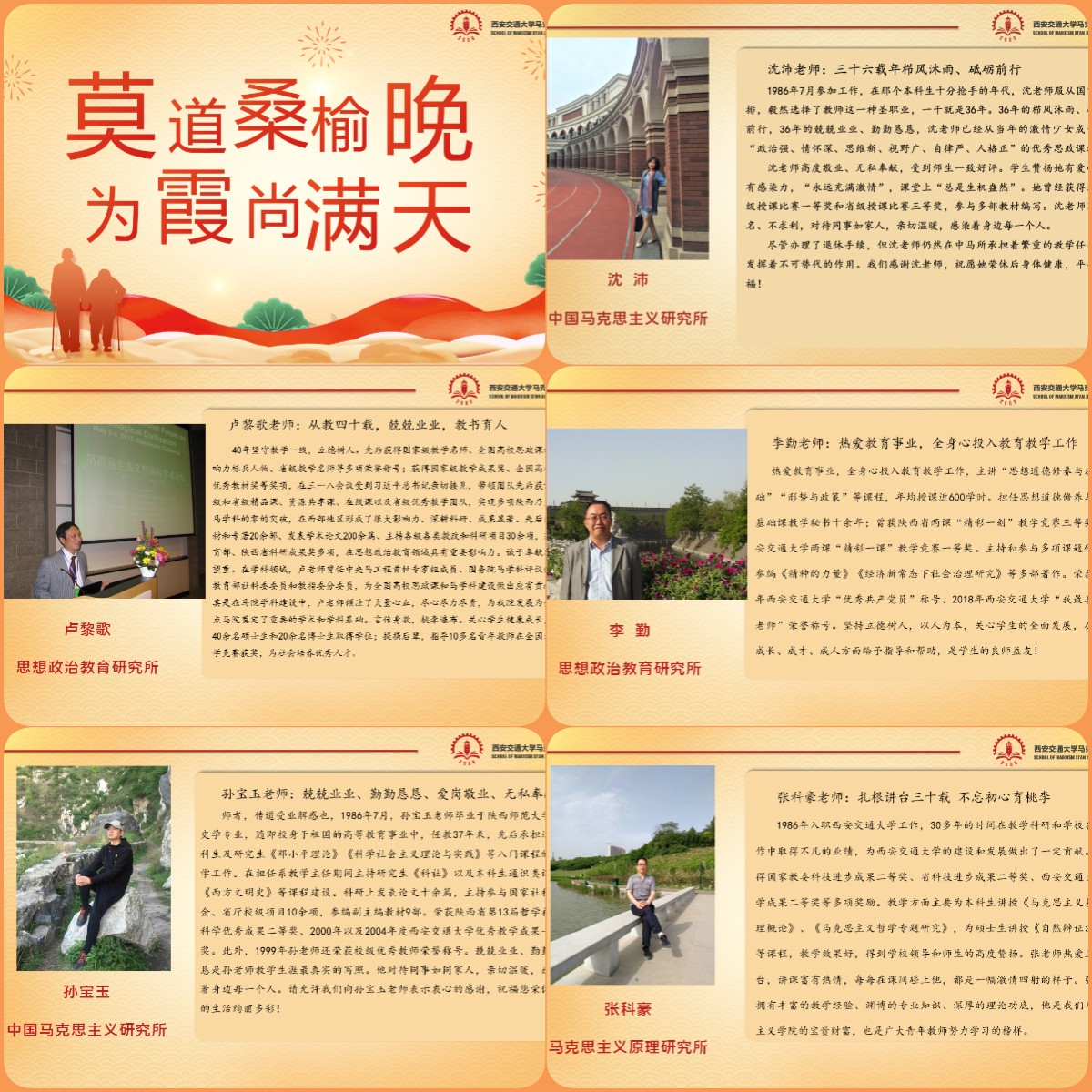 奋进路流光溢彩,数十载桃李芬芳。感谢五位荣休老师多年来为学校发展,学生成才贡献力量,奉献青春年华。退休是人生的转折点,也是新的起点,祝愿荣休老师们以后的生活更加多姿多彩,幸福美满!