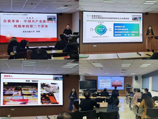 陆卫明所长首先强调了本学期《习近平新时代中国特色社会主义思想概论》课程的重要性,并且鼓励中马所各位老师结合自己的学术专长,打造出优秀的课程专题,引导学生拍短视频在“青梨派”平台发布。为了进一步打磨和完善《习近平新时代中国特色社会主义思想概论》《毛泽东思想和中国特色社会主义理论体系概论》《新时代中国特色社会主义理论与实践》等课程内容,邱雨、冯晔、谷永鑫、张振、金新五位青年教师围绕特定主题进行精彩展示。
