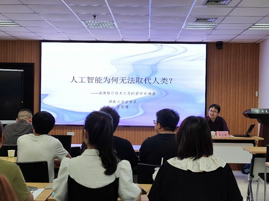 师生作题为“人工智能为何无法取代人类?——海德格尔技术之思的哲学史渊源”的学术报告。本次报告由国外马克思主义研究所所长杨栋教授主持。