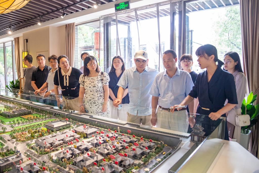 师生在解放门街道党工委副书记韩靖及其他工作人员的带领下参观了坤中巷、皇城书坊,实地调研社区发展情况。