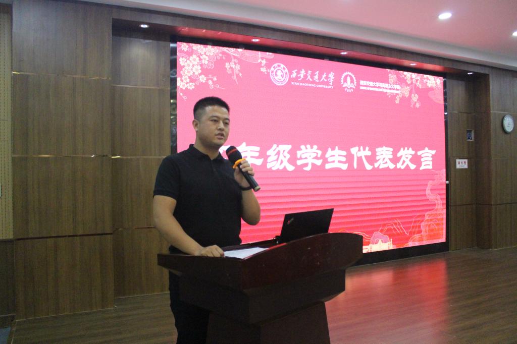 在学生代表发言环节,高年级学生代表、“中国大学生自强之星奖学金”获得者马勇分享了自己进入交大、学在马院的一些思考,希望各位同学能够做到知行合一,奉献智慧力量。本科新生代表李长奇表达了对专业学习的热爱和期待,并号召全体新生在未来四年的学习中与先贤对话、与伟大相识,做好新时代马克思主义理论的接班人。研究生新生代表王天屿表达了自己在理论中探寻真理,在具体实践中追求远大理想的信心,积极将理论本领融入服务国家与人民的具体实践中。