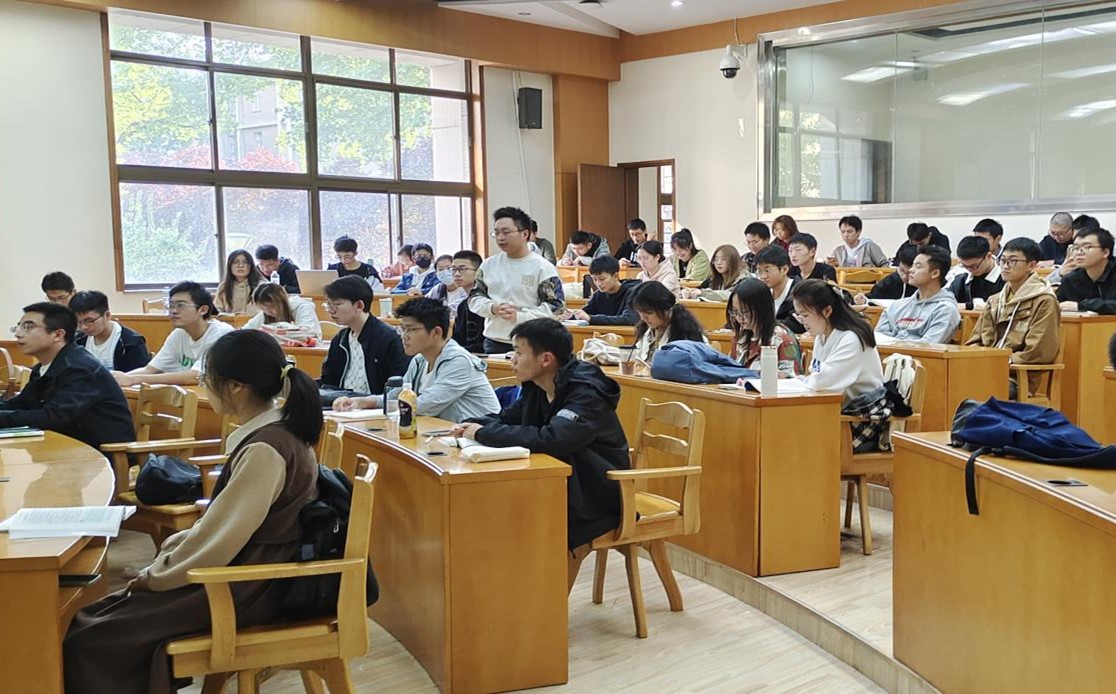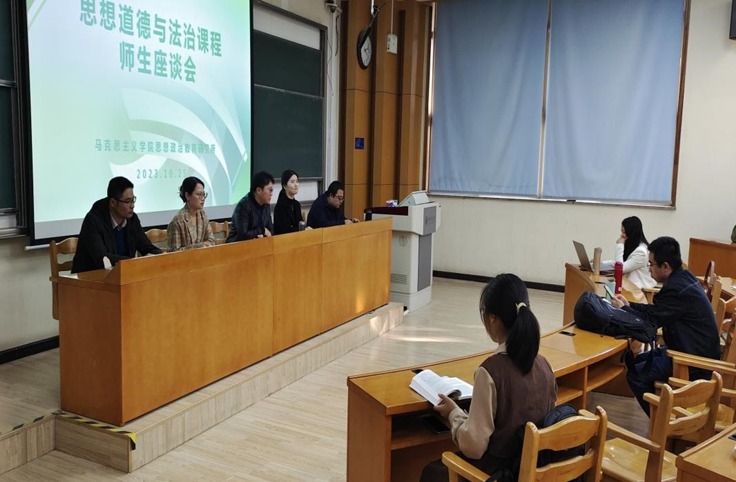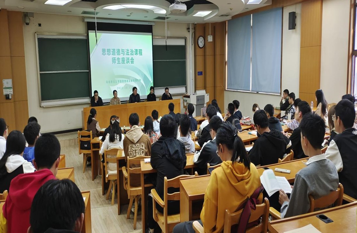 思想政治教育研究所“德法课”课程组在主楼B-104召开师生座谈会,思政所朱旭、冯亮、李家胜、李婧、段朱清、武星星、梁珊7位青年教师,牛刚刚、侯晓放、梅子钰、李嘉奇4位助教,以及40余位本科生代表参加座谈会,会议由思政所副所长朱旭主持。