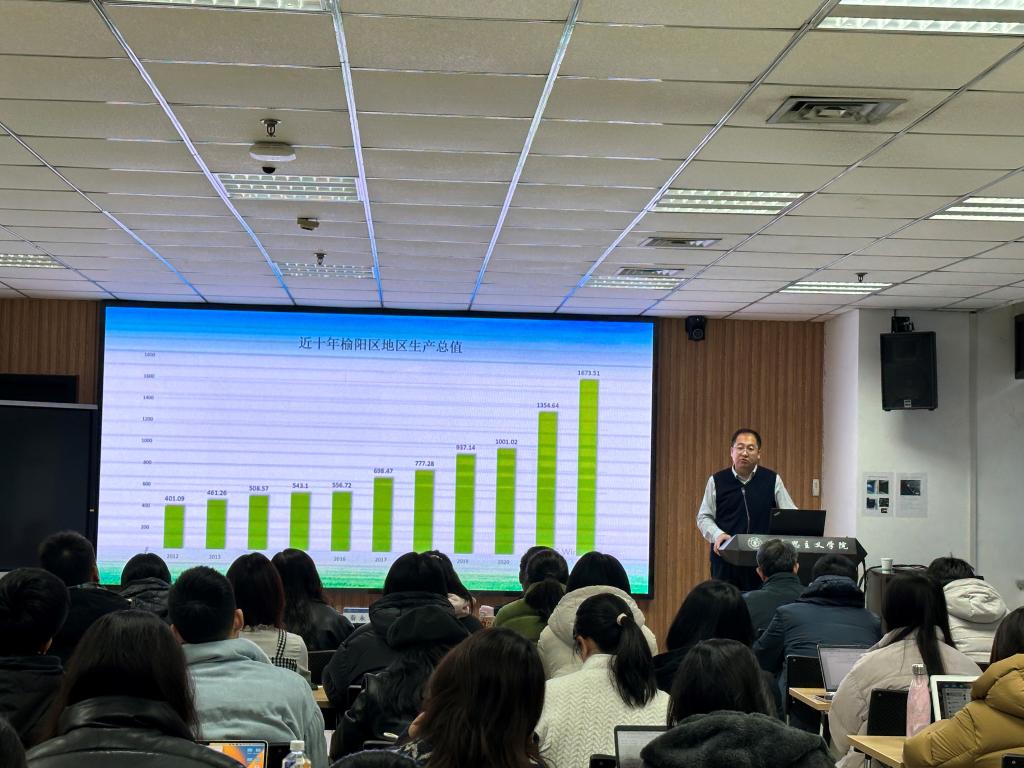 秦永军主任在报告中介绍了榆阳区近些年经济社会发展的基本状况,并结合自身岗位职责,用生动的语言和典型事例详细深入介绍了农村集体产权制度改革“榆阳模式”的背景、发展、形成和实施效果。报告视野宏阔、系统全面、见解独到,是一次理论和实践的生动结合。现场师生就乡村建设等问题与秦永军主任进行了互动交流。