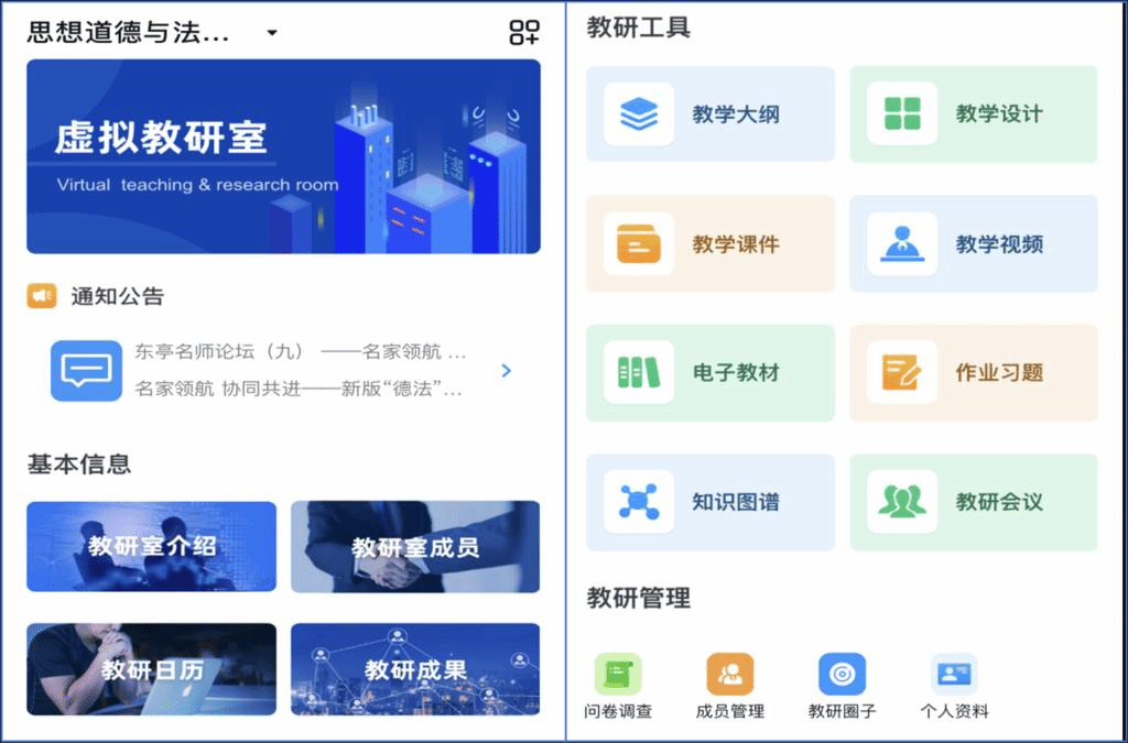 思想政治教育研究所,成立虚拟教研室学术委员会,现有校内委员21人,校外特聘委员17人。虚拟教研室通过组织“云上学习”活动、在线集体备课活动、在线教学展示活动、在线高端报告会等活动,旨在突破时空限制,汇聚全国高校课程教研资源、教研信息、教研数据、教研案例,集中全国高校特色资源,推动资源共建共享,助力高校“思想道德与法治”课程资源的共享交流。目前共吸收491位成员加入虚拟教研室,涉及20多个省市地区、100多所高校的教师。