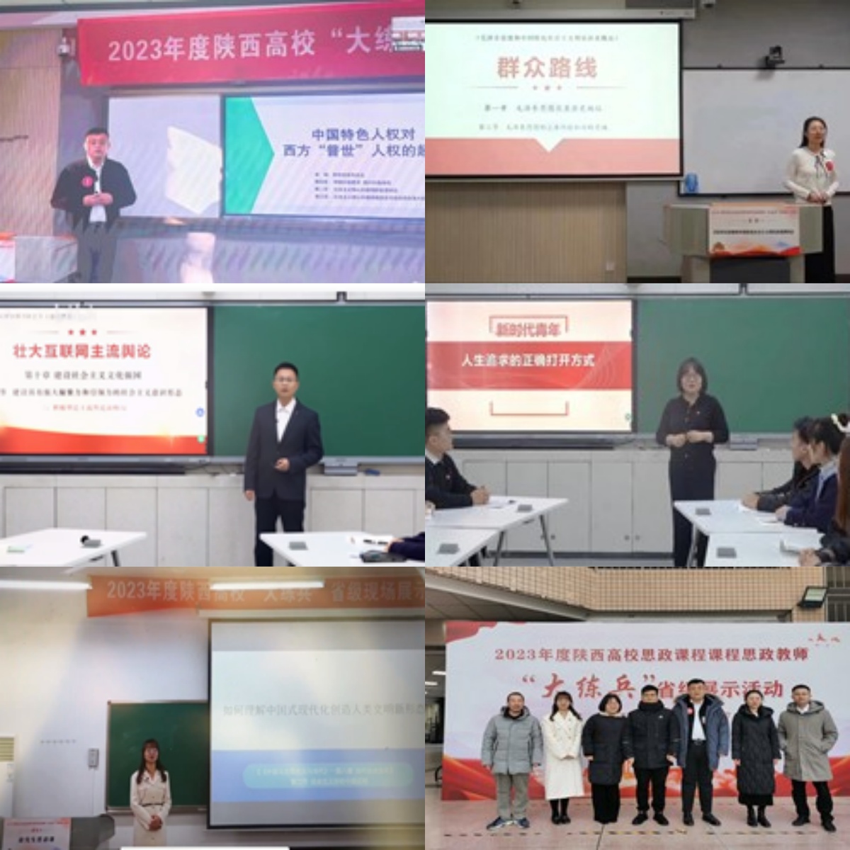 通过一整套“组合拳”,我院思政课建设取得显著成绩,在思政课教学比赛方面,先后在全国青教赛、教育部全国高校思政课教师展示、全国高校课堂创新大赛、陕西高校思政课教师“大练兵”展示活动等中取得优异成绩。成绩既是肯定和褒奖,更是鞭策和动力。学院将以包括陕西高校思政课教师“大练兵”在内的各级各类教学比赛为契机,把立德树人的关键课程建设好,为培养担负民族复兴大任时代新人作出新的贡献。