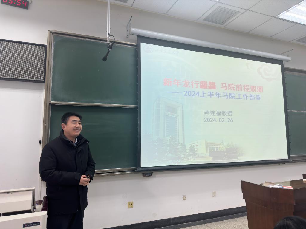 燕连福院长传达了学校2024年度重点工作研讨会精神并对学院新学期重点工作进行了部署。他指出,2023年全院教师齐心协力,推动学院各项重要发展指标方面稳步提升、持续向好,充分体现了全体教师的责任与担当。他强调,新学期要持续围绕学校2024年度重点工作,弘扬西迁精神、鼓起龙马劲头,以改革促发展,重点突出,特点明显,努力在教师队伍建设上有新成绩、在教学科研成果方面有新突破、在学科建设方面有新局面、在融入学校“6352”工程“1211”模式方面有新举措,加快推动黑料网