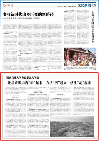 平台,用好课堂教学主渠道,不断丰富教学内容,打造了一批名师名课名教材。在“名师”培养方面,学院坚持老带新、传帮带,给青年教师配备科研导师、师德导师、教学导师,35位教师在省级以上比赛中获奖。先后荣获“国家万人计划教学名师”、全国高校思政课名师工作室等;获得第五届全国青年教师教学大赛一等奖、全国思政课教学展示一等奖等奖项。在“名课”建设方面,共建成省部级以上各类课程18门,其中《毛泽东思想和中国特色社会主义理论体系概论》等6门课程入选国家一流课程。在“名教材”出版方面,《西迁精神教育读本》等20多部教辅教材获奖。其中,《马克思主义诞生的标记:〈共产党宣言〉新读》入选国家新闻出版署2020年“优秀通俗理论读物出版工程”,在喜马拉雅平台播出,听众1000多万人次。