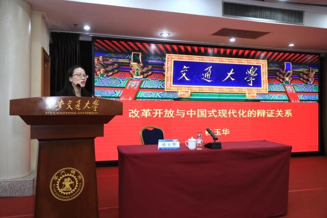杜玉华教授对中国式现代化与改革开放的辩证关系进行了论述,指出改革开放是推进中国式现代化的根本动力,中国式现代化是改革开放的目标指引。