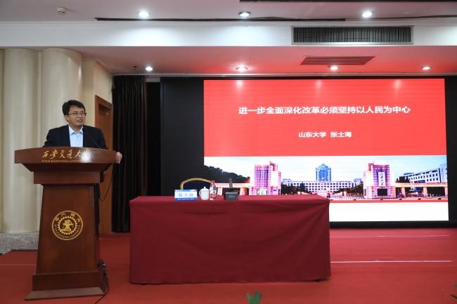 院长张士海教授围绕“进一步全面深化改革必须坚持以人民为中心”展开讨论,认为推进城乡融合发展、更好地实现全体人民共同富裕正是坚持以人民为中心的体现和表达。