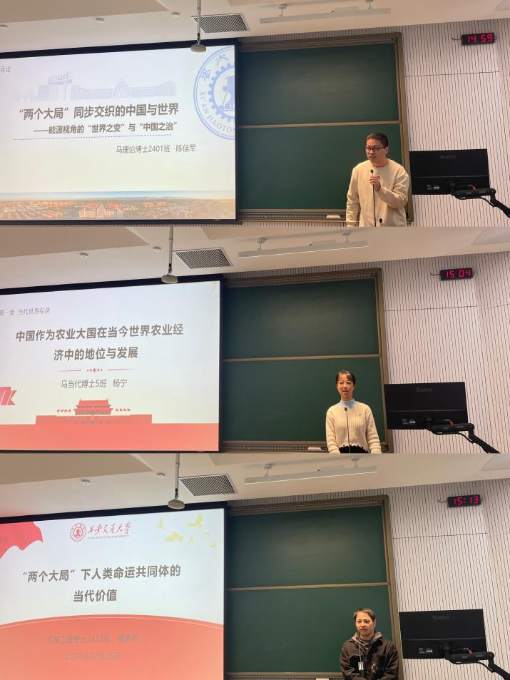本次优秀课件评选活动作为全国高校“中国马克思主义与当代”教学创新中心系列活动的重要一环,为推动研究生思政课教学改革创新作出积极尝试,得到学生高度认可。来自能源与动力工程学院B2432班的孙勇飞表示:“在这次活动中,我们自主选择视角制作课件分享自己的研究内容,通过将理论知识转化为直观的案例和数据,进一步深化了自己对相关理论内容的理解。”新闻与新媒体学院2475班曹梓渲表示:“我们基于自身专业背景,聚焦现实问题,查阅大量文献、数据和案例资料,将理论与实际紧密联系,并形成研究成果,加深了对课程学习的理解,收获颇丰。”生命科学与技术学院B2413班杨宁表示:“本次活动将课程教学与课外实践相结合,让我们对课内知识产生了更深入的思考,是非常好的教学尝试与改革。”