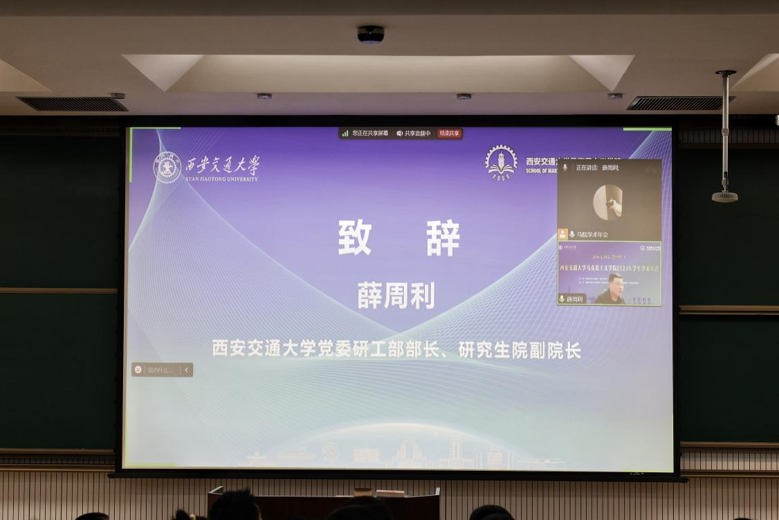 薛周利代表研究生院致辞,并对本次学生学术年会的成功举办及获奖同学表示热烈祝贺。他指出,学术年会是研究生提升学术水平、展示研究成果的重要平台,也是学院培养高水平人才的关键举措,同时鼓励同学们脚踏实地、锐意进取,不断拓展学术视野、提升研究能力,做坚定的马克思主义学习者研究者传播者。