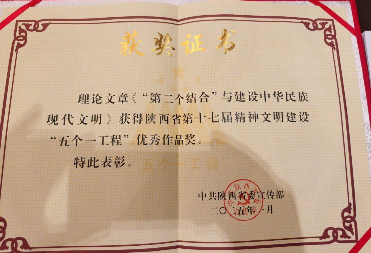 近日,陕西省第十七届精神文明建设“五个一工程”奖揭晓。燕连福教授撰写的理论文章《“第二个结合”与建设中华民族现代文明》获得陕西省第十七届精神文明建设“五个一工程”优秀作品奖。