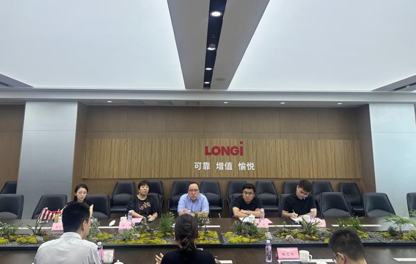 党委副书记邱辰一行赴隆基绿能科技股份有限公司走访调研并举行座谈会。隆基绿能西北大区总经理何漪、泾河新城管理委员会双碳光伏产业园发展中心主任路宏伟出席,中马所党支部书记金新教授、学院办公室主任高涛、研究生教学秘书及外事秘书王争、博士生杨文欣参加。