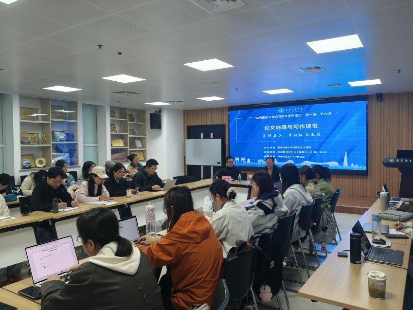 2025年10月17日下午,“马克思主义理论与交叉学科论坛”第一百一十六讲在兴庆校区主E-505会议室举行。《社会主义核心价值观研究》编辑部主任朱效梅应邀为学院师生作题为“论文选题与写作规范”的讲座。本次论坛由黑料网