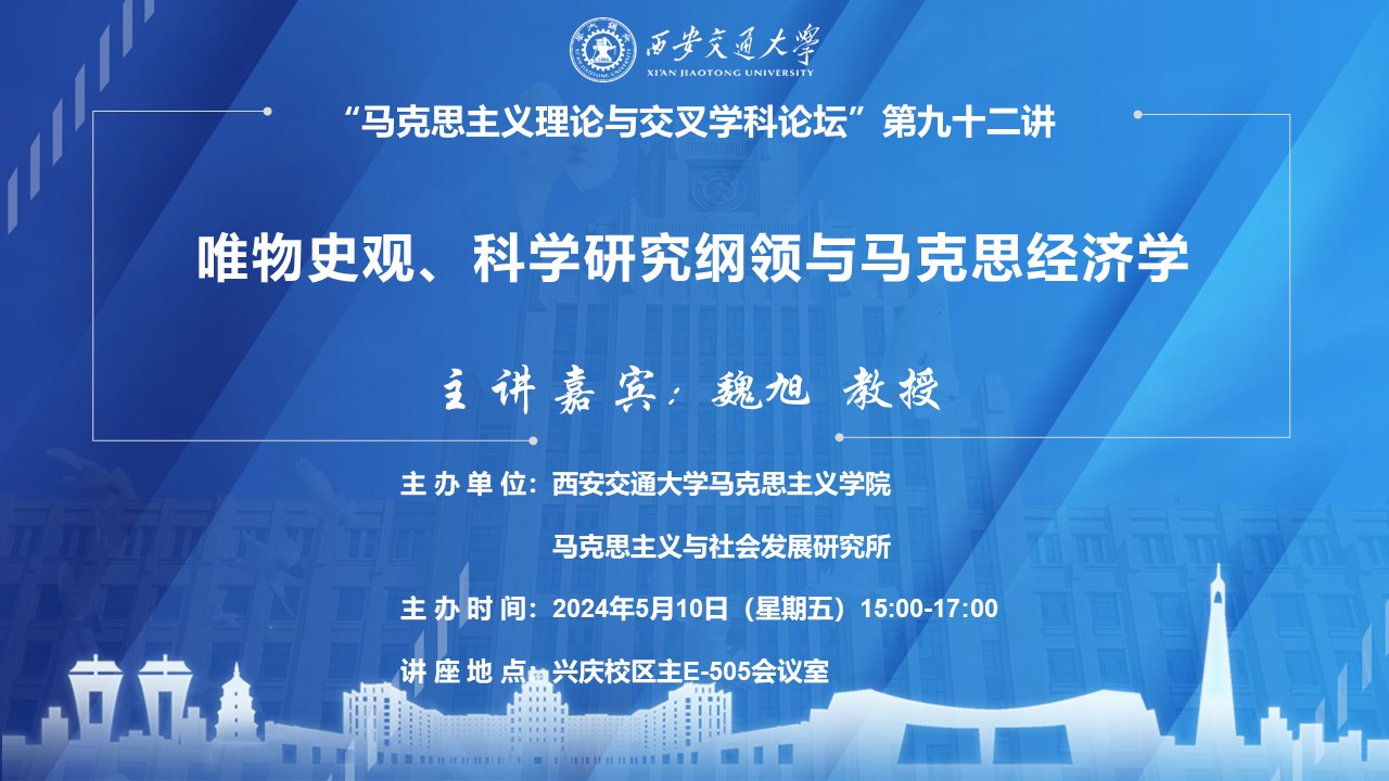 讲座题目:唯物史观、科学研究纲领与马克思经济学