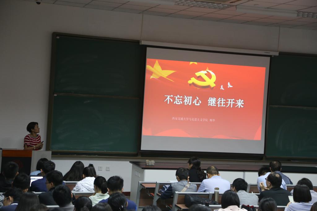 杨华副教授应邀为学院全体师生党员作题为“不忘初心,继往开来”的报告。学院分党委委员、党委中心组成员、教工党员和学生党员共200余人参加本次报告会。报告会由分党委副书记易媛教授主持。