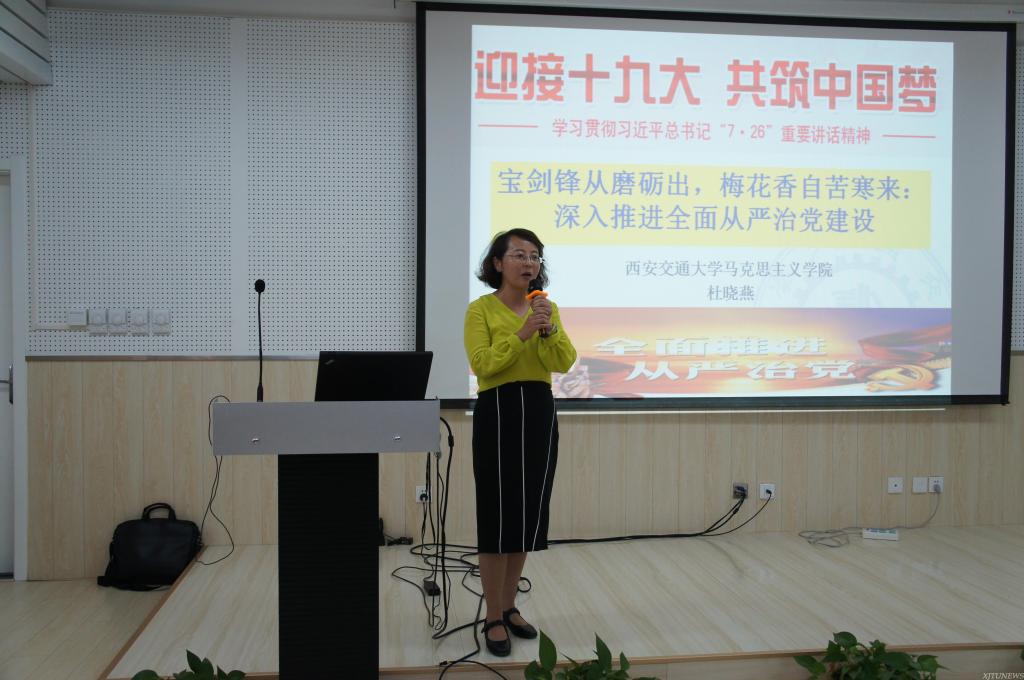 杜晓燕老师以《迎接十九大,共筑中国梦》为题,结合自己的学习和思考,从“什么是全面从严治党”“如何理解全面从严治党的新形势”“准确把握全面从严治党的新内涵新要求”和“未来全面从严治党之路该怎么走”四个方面,对全面从严治党进行了详细讲解,使与会人员对习近平总书记7·26讲话的主要内容和结构脉络有了比较清晰的掌握。对离退休同志进一步了解中国特色社会主义理论体系,继续深入学习习总书记重要讲话精神具有一定的参考作用。