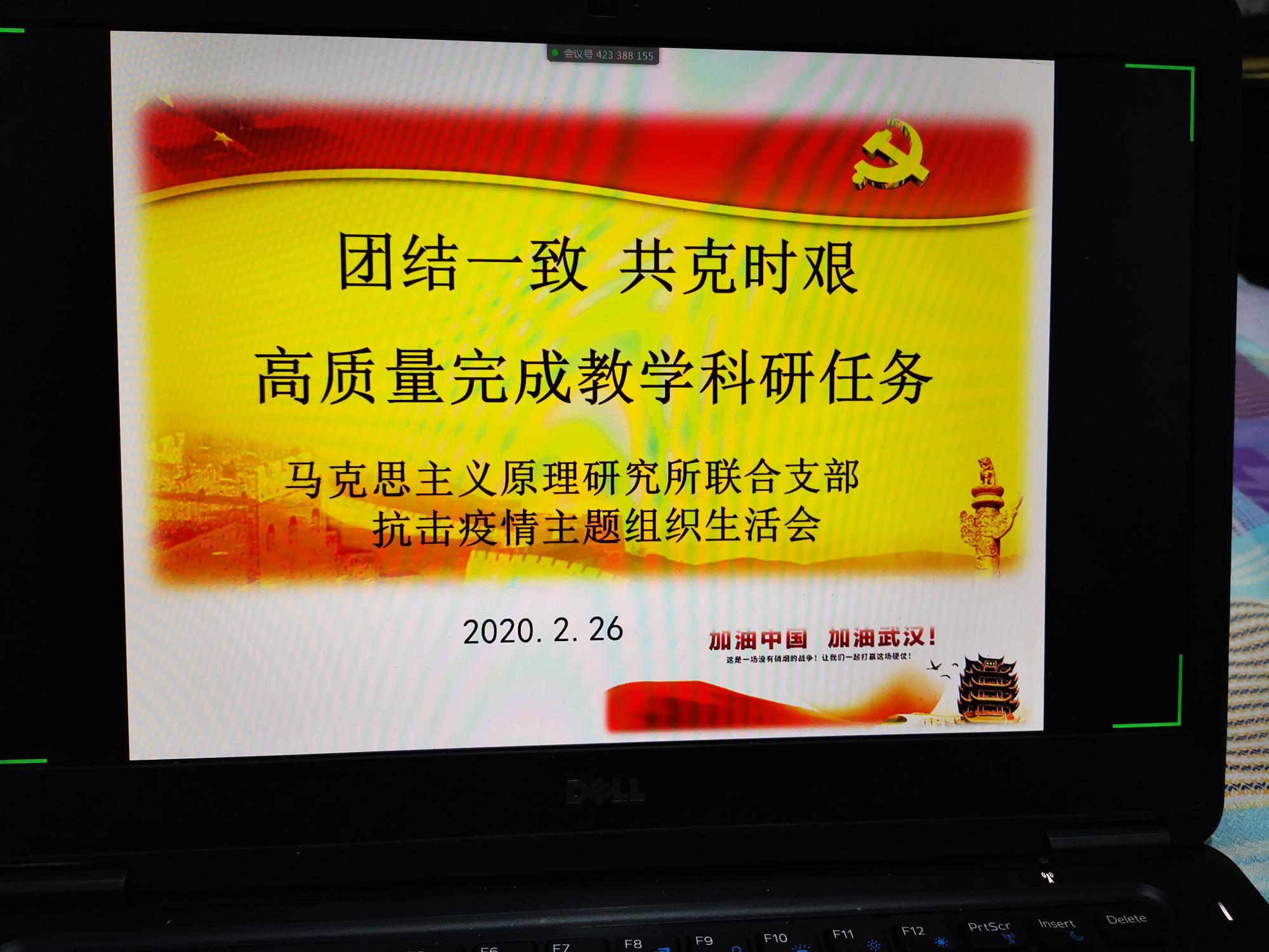 马克思主义原理研究所联合党支部,举行以“团结一致 共克时艰 高质量完成教学科研任务”为主题的组织生活会,会议由马原所党支部书记樊晓燕副教授主持。受新冠肺炎疫情影响,会议采用线上形式,支部成员畅所欲言,交流充分,会议从晚上八点一直持续到九点半。