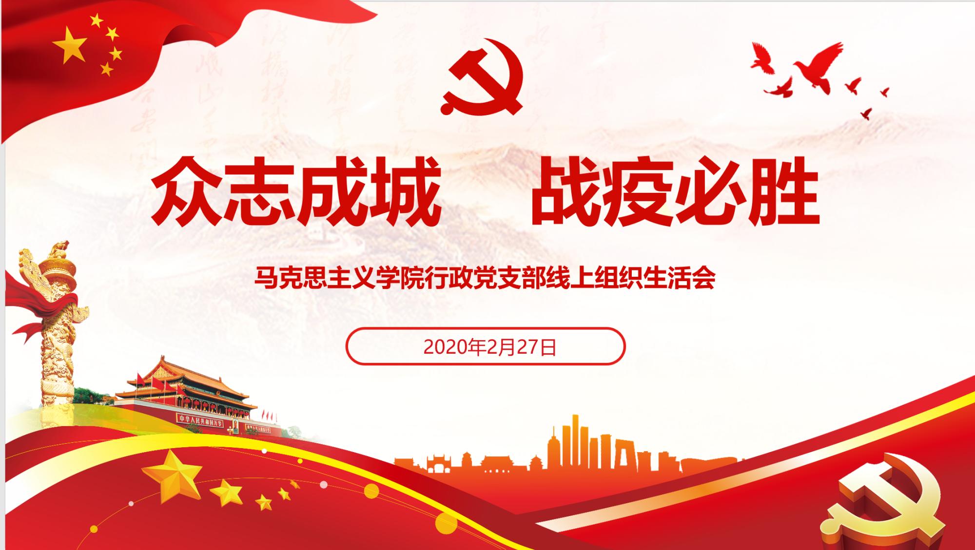 行政党支部召开“坚决打赢疫情防控阻击战”专题组织生活会,支部全体党员通过视频会议的形式参与此次组织生活会,深入学习习近平总书记在统筹推进疫情防控和经济社会发展工作部署会议上的重要讲话,并就近期行政工作做了部署。