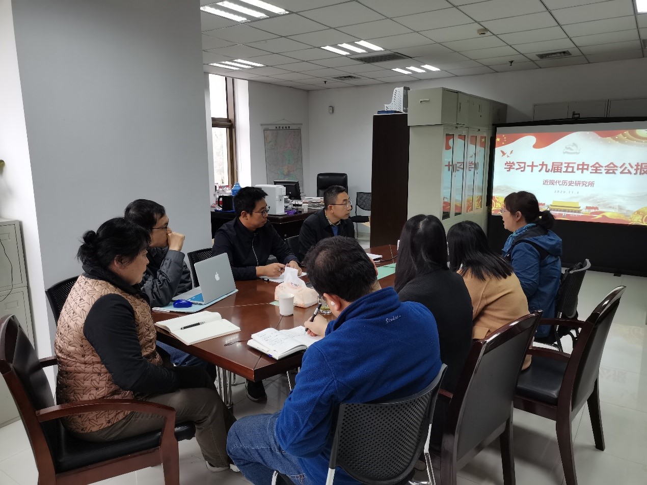 2020年11月4日,近现代历史研究所党支部以“学习党的十九届五中全会精神”为主题召开组织生活会,学院党委委员、副院长马忠教授列席会议。会议由党支部书记王宇颖副教授主持。