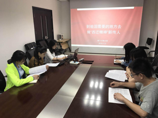 硕7110党支部在党员之家召开“到祖国需要的地方去,做西迁精神新传人”组织生活会。会议由硕7110党支部组织委员何妮同志主持,硕7110党支部成员参加。