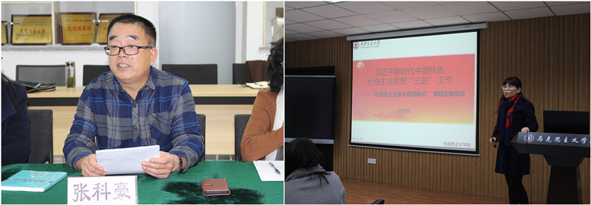 支部书记张科豪介绍了马克思主义原理研究所、马克思主义与社会发展研究所、国外马克思主义研究所作为联合支部的基本情况,回顾了支部建设的具体做法和经验,期望大家有强烈的自我意识,建功新时代。对于未来支部工作安排,他与大家重温习总书记在全国教育工大会上讲话,强调围绕基本职责,做合格思政课教师。马克思主义原理研究所副所长樊晓燕老师介绍了《十九大精神进课堂工作方案》《习近平新时代中国特色社会主义思想进马克思主义基本原理课堂工作大纲》的进展情况、专题教学、“小班讨论”等互动式教学改革的实施效果。