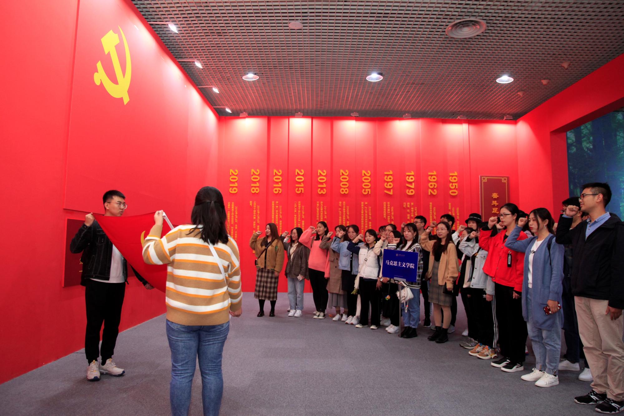 “我志愿加入中国共产党......随时准备为党和人民牺牲一切,永不叛党”参观尾声,在鲜红的党旗下,全体党员重温入党誓词。“七十春秋正峥嵘,强化创新出伟绩。新中国成立70年来,陕西省见证了中华民族翻天覆地变化,华夏巍巍屹世中,祝愿祖国日益强盛、陕西日益繁荣!”硕9114团组织负责人陈梦婷表示。
