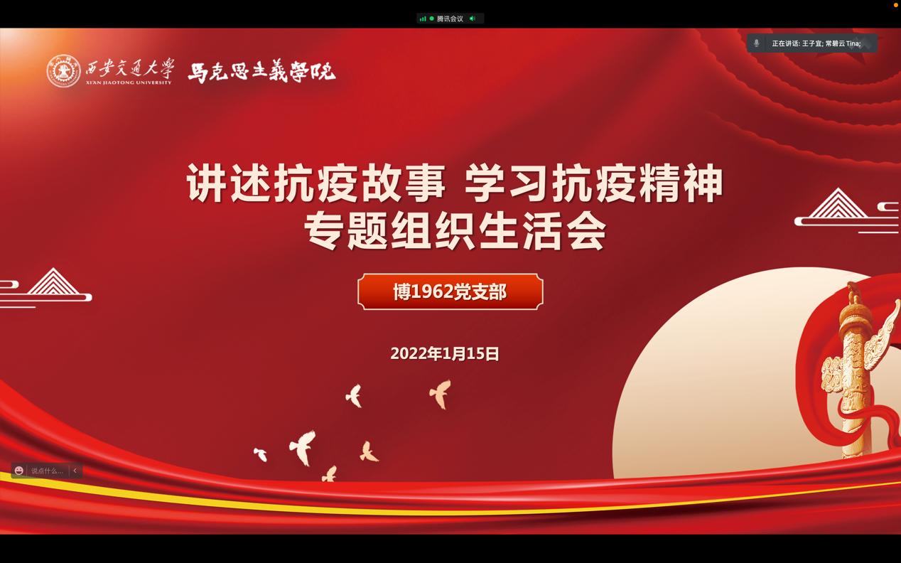 博1962党支部在抗疫期间组织支部成员开展“讲述抗疫故事 学习抗疫精神”的主题活动,并于2022年1月16日在线上召开专题组织生活会。
