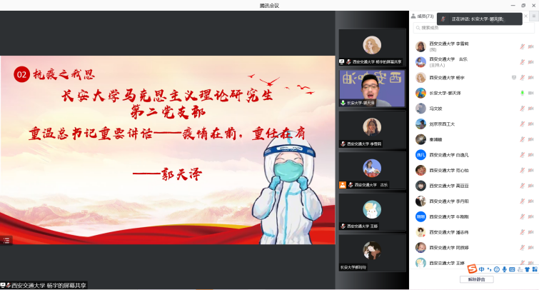 、长安大学、西北工业大学三校两院系党支部齐聚于线上,开展联学共建,共同探讨新时代中国青年在抗击疫情中的理性思考与担当作为。