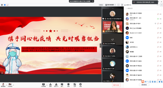 硕1116党支部、长安大学马克思主义理论研究生第二党支部、西北工业大学外国语学院2021级研究生党支部联合开展,共计76名同志参加会议。