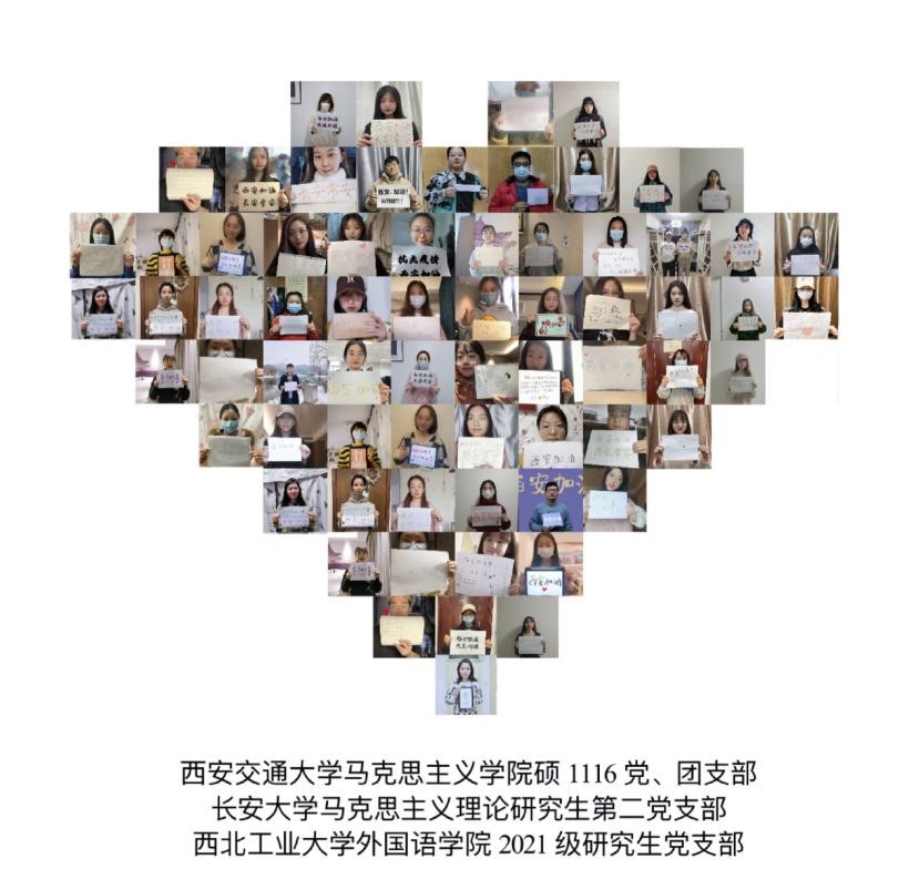 -长安大学-西北工业大学三校深厚的友谊,疫情阻隔了空间,却无法阻挡三校党团支部成员情系家国的真心。通过线上交流,传达了真切关怀;通过手写祝福,构筑了“同心圆”,传递出携手同行的爱心力量。西安的青年学子,将全国人民的关爱变作铠甲,勇担重任,勇克时艰、勇斗疫情。