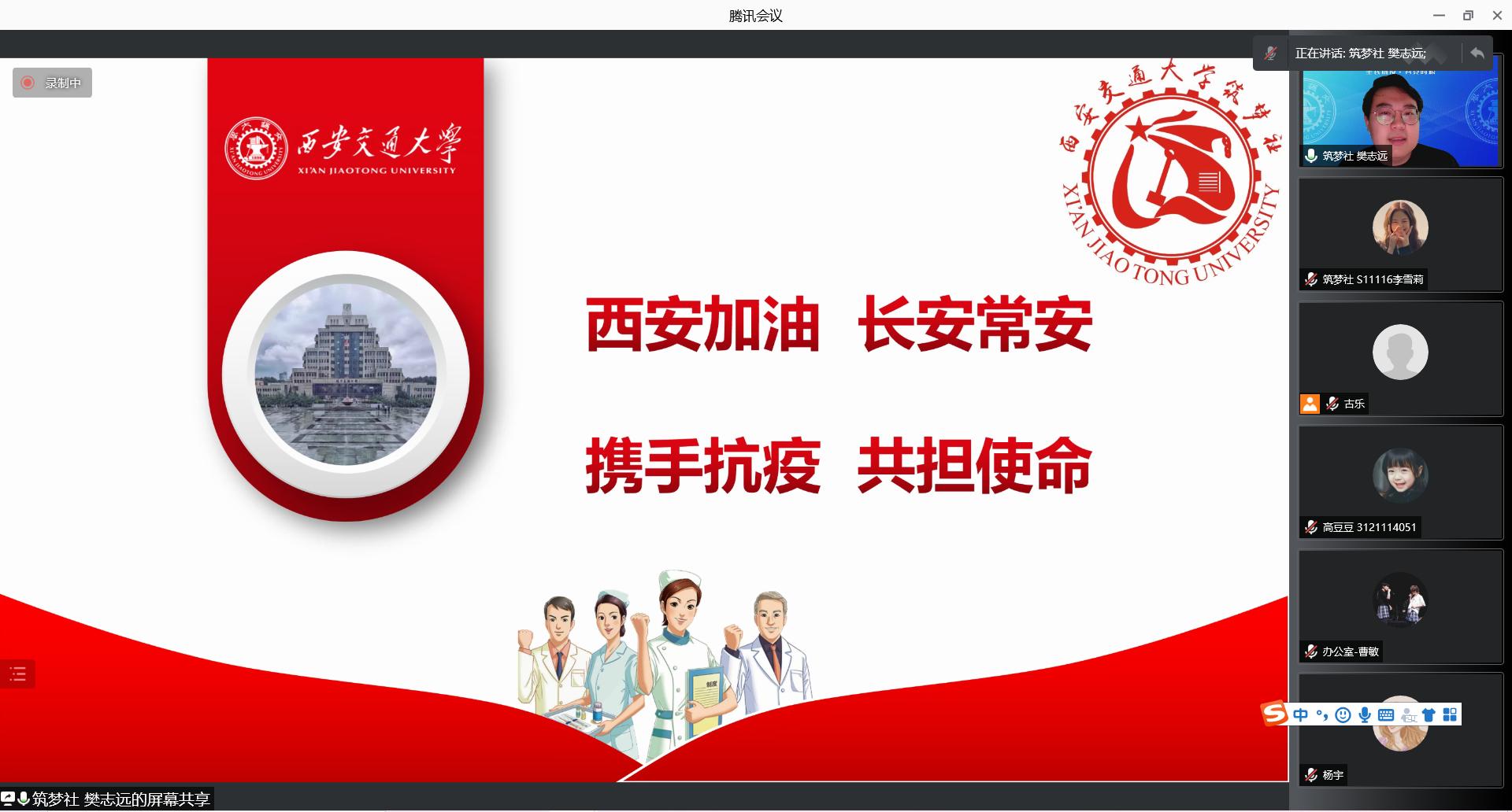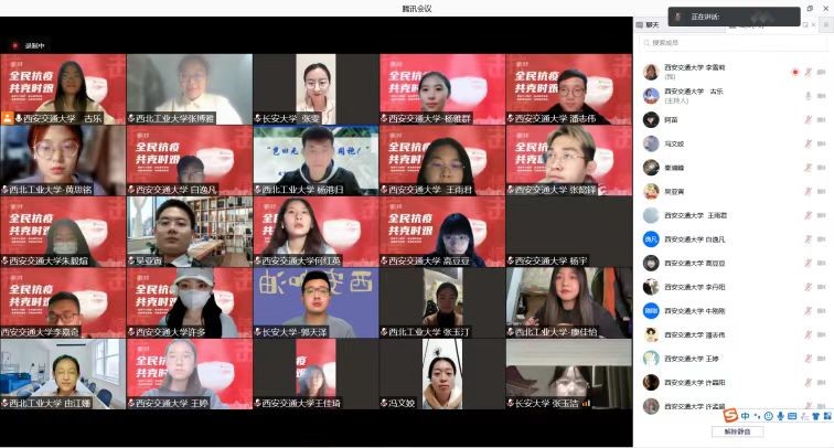 硕1116党、团支部、长安大学马克思主义理论研究生第二党支部和西北工业大学外国语学院2021级研究生党支部于线上联合开展党支部联学共建活动,共76名同志参加本次会议,一同探讨新时代中国青年在抗击疫情中的理性思考和担当作为。