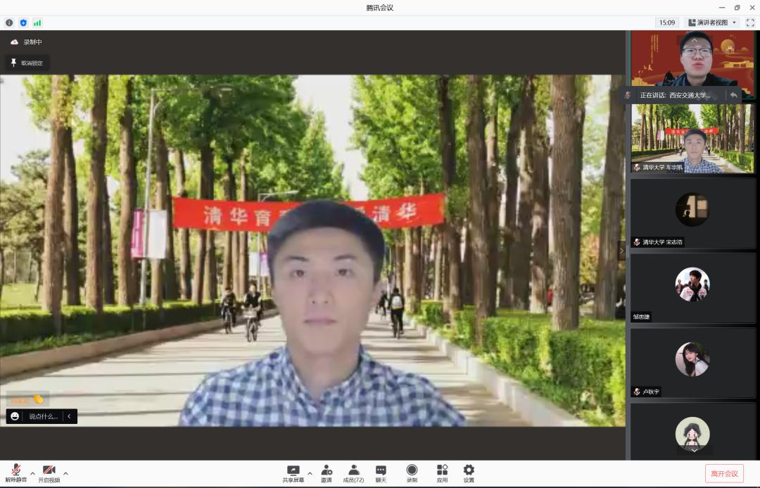 本硕博70多位同学和清华大学博士生讲师团功能型党支部成员参加本次活动。活动由硕1117班党支部书记代成军主持。