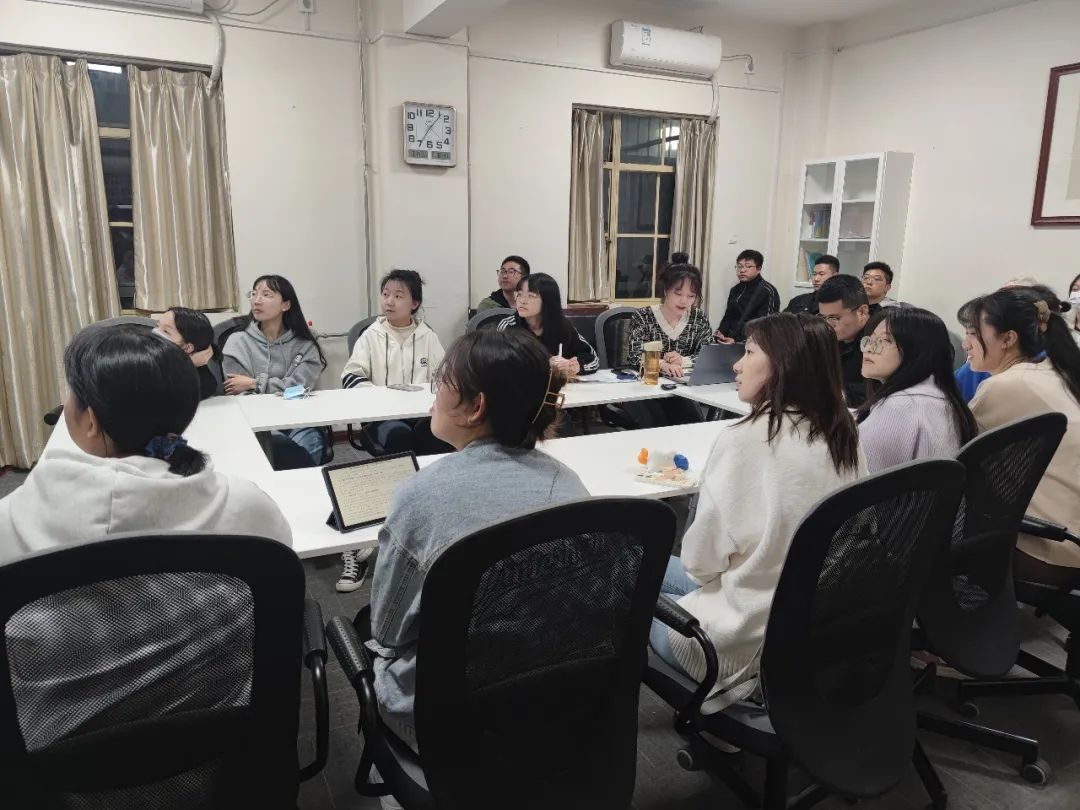 总结成果,春日扬帆再启航。团支部书记张思思作题为“春日扬帆再启航”的工作报告,对开学以来党、团支部开展的各项活动进行了梳理,包括支部宣传、“每月一会”策划与筹备、志愿服务活动、妇女节送祝福活动等,充分肯定了大家参与班级活动的热情。随后,张思思从班级公众号运营、团建活动两个主要方面规划了接下来的工作,积极号召大家发挥智慧和才干,为支部建设贡献力量。