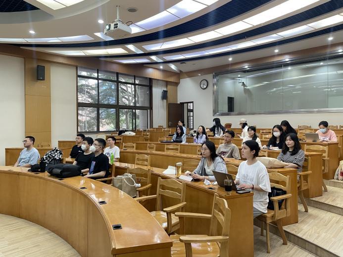 团支部组织委员刘雨松进行了“诗词格律概述”主题团课宣讲。他首先以古代的平、上、去、入四声与普通话里的阴平、阳平、上声和去声为基础,回答了何为平仄这一诗词格律的基本问题,随后并介绍了诗词的韵脚和格律要求。他呼吁同学们积极学习并运用诗词,以诗言志,砥砺品行,在新时代书写青春华章。