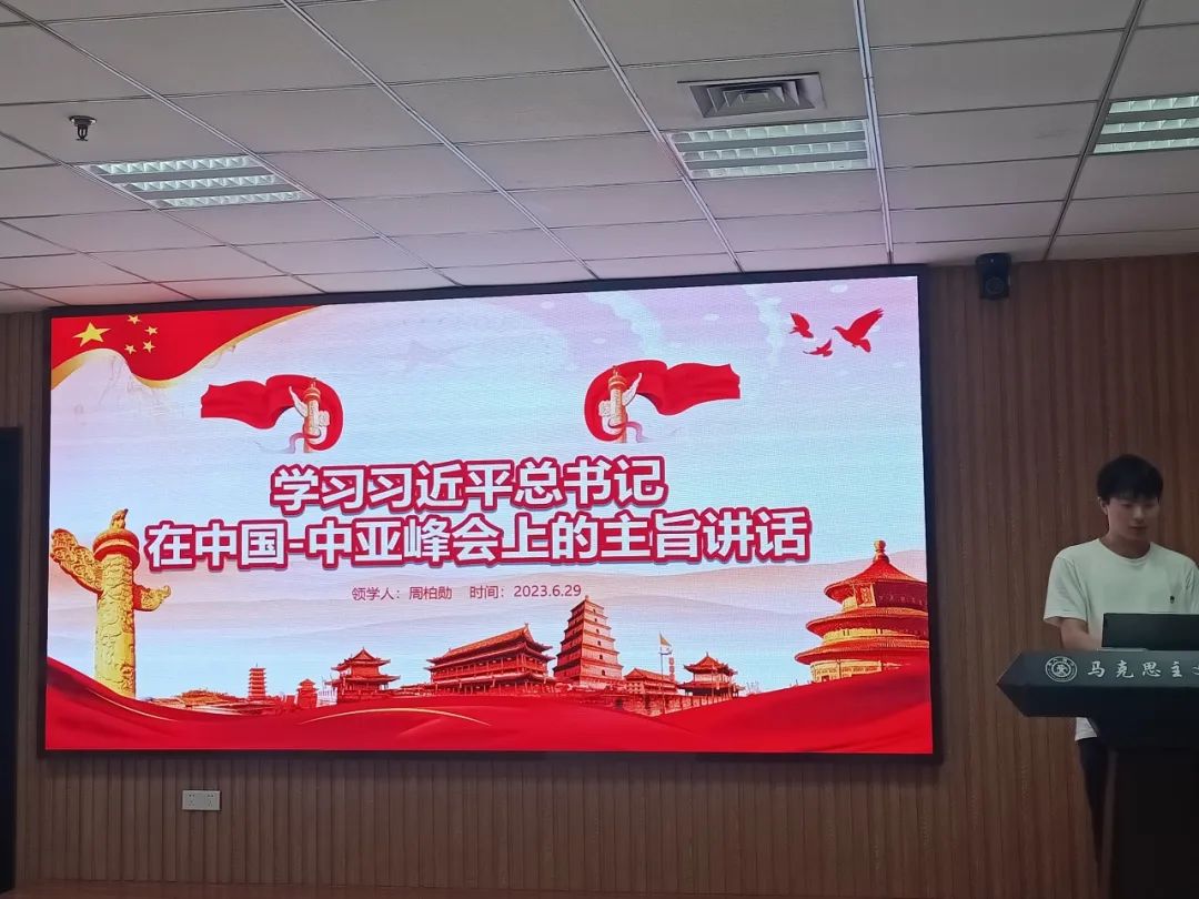 周柏勋带领大家学习了习近平总书记在中国—中亚峰会上的主旨讲话,他详细介绍了中亚五国的概况和讲话的核心内容,表示中国—中亚峰会对于促进地区间的经济合作、文化交流,以及推动共建“一带一路”倡议具有重要的意义,并激励大家要以蓬勃向上、攻坚克难的精神状态,赢得历史主动,创造新的辉煌。