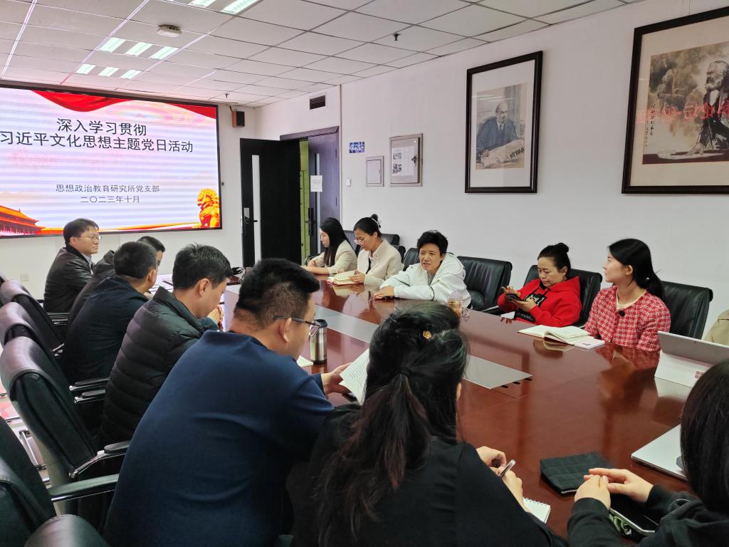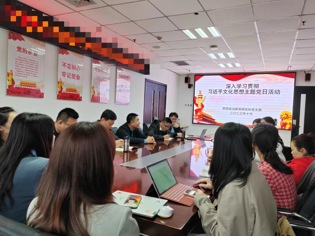 思想政治教育研究所党支部开展“深入学习贯彻习近平文化思想”主题组织生活会暨集体备课会,支部书记朱旭同志主持会议,思政所党支部全体党员参加会议。