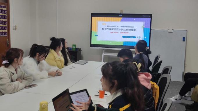 她还补充道,我们在关注自我需求的同时需要清晰、合理地向对方表达需求,并在班级微信群里分享了《亲密关系》一书,引导大家科学培养、有意识训练自己关于亲密关系的认识和处理方式。其他同学也就该话题分享了自己的看法,如不过多期待他人,也不要总想满足他人的期待等等。同学们主动分享,热情交流,不时拿出手机拍照记录,并表示此次心理班会开得很成功。大家一致认为,本月心理班会的选题切中同学们所需,取得了良好的效果。
