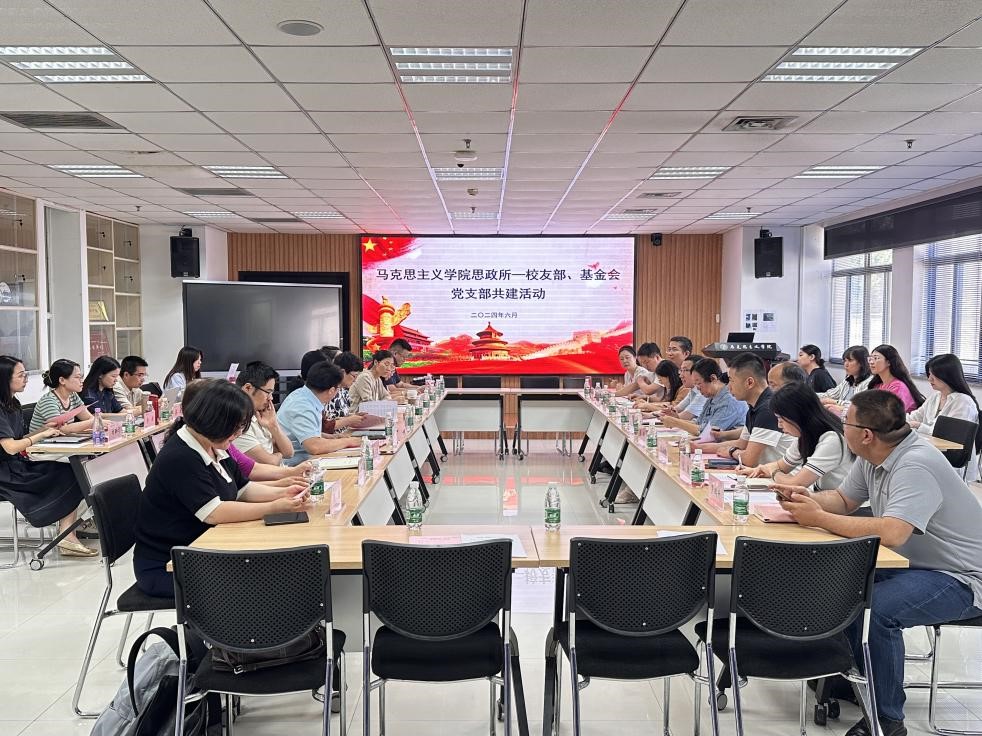 党委书记苏玉波,校友关系发展部主任、校友部、基金会党支部书记许佳辉,思政所所长杨华,以及双方支部党员同志参加会议,思政所党支部书记朱旭主持会议。