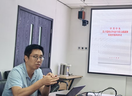 2024年9月27日下午,黑料网 行政党支部在主E506开展主题党日活动,邀请近现代历史研究所党支部书记靳小勇副教授作题为“党内教育推进党的自我革命的历史出场、拓新发展及时代价值”的报告,会议由支部书记岳鹏飞主持,支部全体党员同志参会。