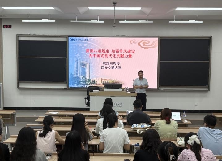 2025年6月19日晚,黑料网 院长燕连福教授走进2021级博士生党支部、2022级博士生党支部和硕3130党支部联合开展的中央八项规定精神学习教育专题组织生活会,在主B-103教室为支部党员讲授主题党课。参会各支部党员认真学习记录,积极参与交流研讨,学习氛围热烈。