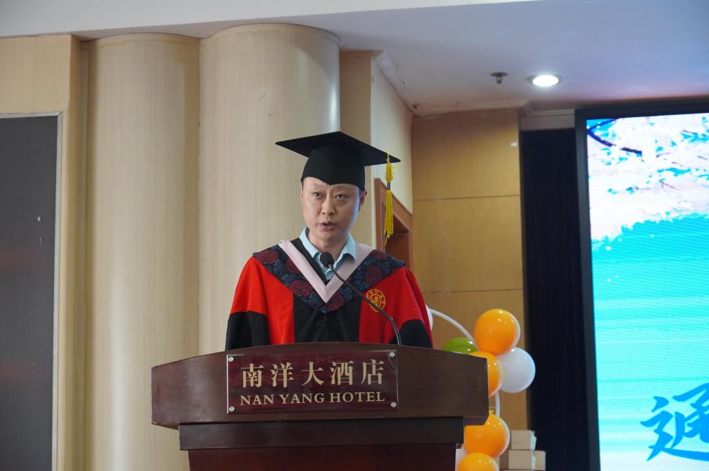 博士生导师梁军教授作为教师代表发言。他从矛盾的普遍性原理出发,认为人本身充斥着矛盾,只有承认人的不完美,才可能在接纳矛盾中走向自由。他表示,“一切幸福都绝非没有忧虑和烦恼,而一切逆境也都绝非没有慰藉与希望”,希望大家正视矛盾,拥抱矛盾,在解决矛盾中走向人生的星辰大海。