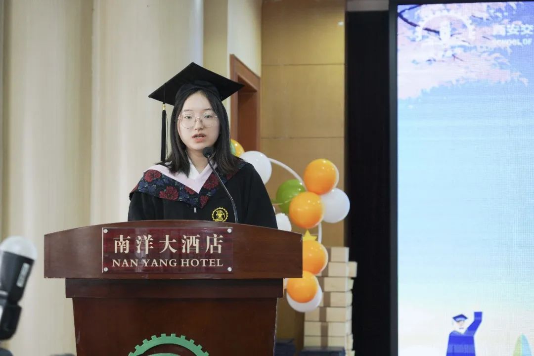 本科毕业生代表张智一在发言中表达了对母校和老师最真挚的爱与感谢,同时也向母校和广大毕业生送上深深的祝福。她表示,交大为广大学子创造了良好的学习氛围和成长平台,愿大家不负初心、不忘来路,得偿所愿、无愧时代,愿交大的荣光长伴你我,他日以同学之名为母校增辉。