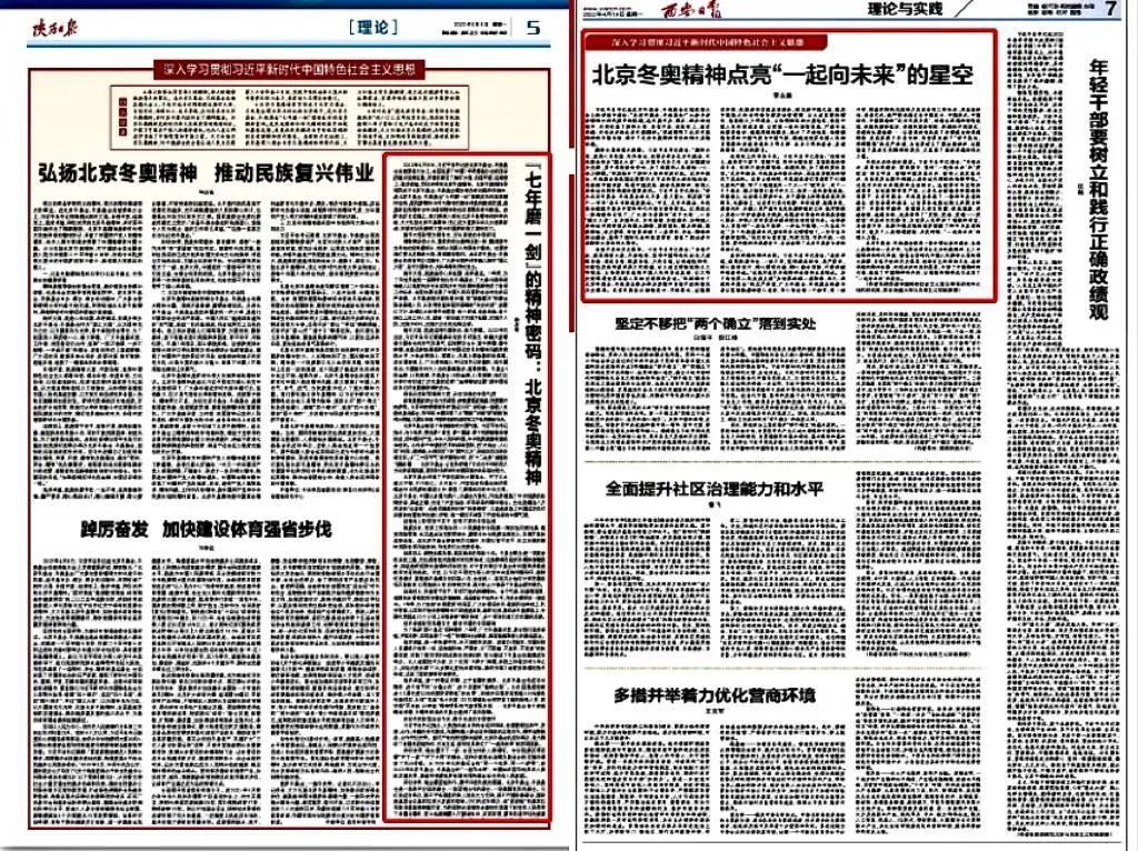 2022年4月8日,习近平总书记在北京冬奥会、冬残奥会总结表彰大会上,首次阐述了胸怀大局、自信开放、迎难而上、追求卓越、共创未来的北京冬奥精神。4月18日,《西安日报》第七版“理论与实践”版刊发了李永胜教授《北京冬奥精神点亮“一起向未来”的星空》的理论文章。6月6日,《陕西日报》第五版“理论”版刊发了燕连福教授《“七年磨一剑”的精神密码:北京冬奥精神》的理论文章,深刻阐明了北京冬奥精神的丰富内涵,揭示了北京冬奥精神背后的伟大实践创造。