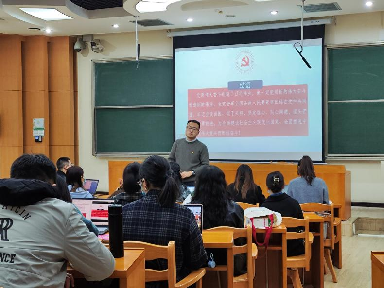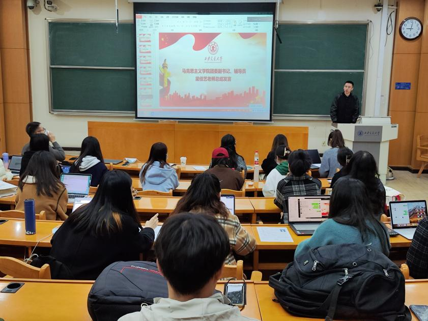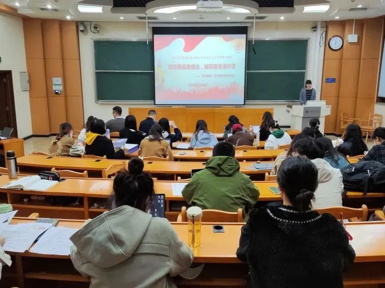 副教授刘源围绕党的二十大作专题辅导。辅导以“深学细悟、躬身笃行——在党的二十大报告中汲取智慧和力量”为主题,从“深学细悟党的二十大报告的基本方法”“总体理解党的二十大报告的结构内容”“立足当代青年角度的若干思考”三个部分展开。刘源紧扣党的二十大报告内容,结合详实的事实案例,为同学们系统全面地梳理了党的二十大报告的框架结构,并鼓励同学们运用“大历史观”视角体悟大会主题、分析报告内容,从而“在马研马”“在马言马”,主动讲好中国故事、宣传党的理论。刘源以“奋斗”二字对报告做出高度概括和总结,他认为,过去是奋斗来的,现在仍需不断奋斗,未来的伟大复兴和全面建设社会主义现代化国家,只有靠奋斗,没有第二条路。理论上的奋斗,形成理论上的硕果;实践中的奋斗,形成实践中的璀璨。