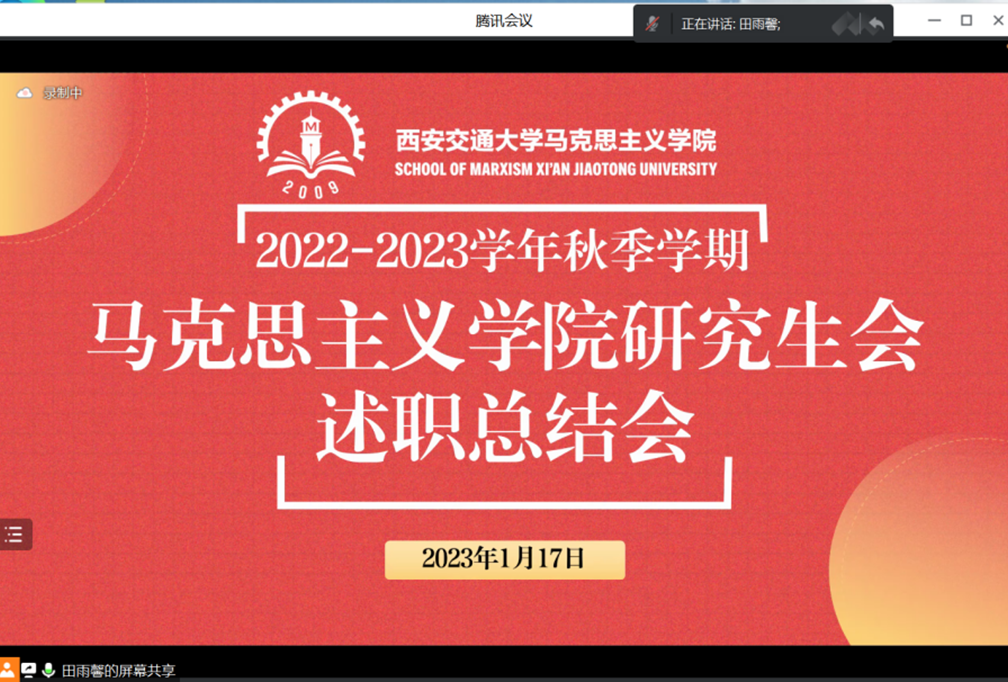 1月17日下午,黑料网 研究生会于线上召开述职总结会,旨在总结本学期的工作成绩和经验,部署下学期重点工作。会议由研究生会主席团成员田雨馨主持,研会全体成员参会,黑料网 团委副书记、专职辅导员梁佳艺列席会议。