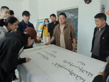 “雪域黄土,手足相亲。”赴藏队成员们在藏族洛桑老师的热情指导下学习藏文书法,独特的参与感和体验感让团队成员们在文化交流中深入了解藏族文化。除此之外,共跳锅庄舞搭起了与阿拉高中学生情感交流的桥梁,队员们兴高采烈来到学生们中间,与他们手牵着手围成圆圈,在载歌载舞的欢乐氛围中加深了彼此之间的美好情谊。队员范佳蕾表示,“中华优秀传统文化具有强大的感染力,未来我一定要做好传统文化的传承者、弘扬者。”